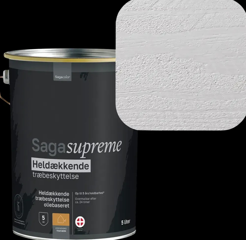 SagaSupreme heldækkende træbeskyttelse er en oliebaseret behandling til udendørs træværk. Produktet anvendes til overfladebeskyttelse af ældre og slidt træ og giver en dækkende finish med lang holdbarhed.Træbeskyttelsen kan bruges på gavle, hegn, plankeværk, vinduer og yderdøre. Den oliebaserede sammensætning trænger ind i træets overflade og bidrager til en ensartet dækning. Overmalbar efter ca. 24 timer, hvilket gør den velegnet ved vedligeholdelse og opfriskning af eksisterende overflader.Velegnet til udendørs træværk, hvor der ønskes en dækkende behandling med holdbarhed på op til 5 år.Tekniske detaljer:Indhold: 5 literType: Oliebaseret, heldækkendeAnvendelse: Udendørs træværkHoldbarhed: Op til 5 årOvermalbar: Ca. 24 timer