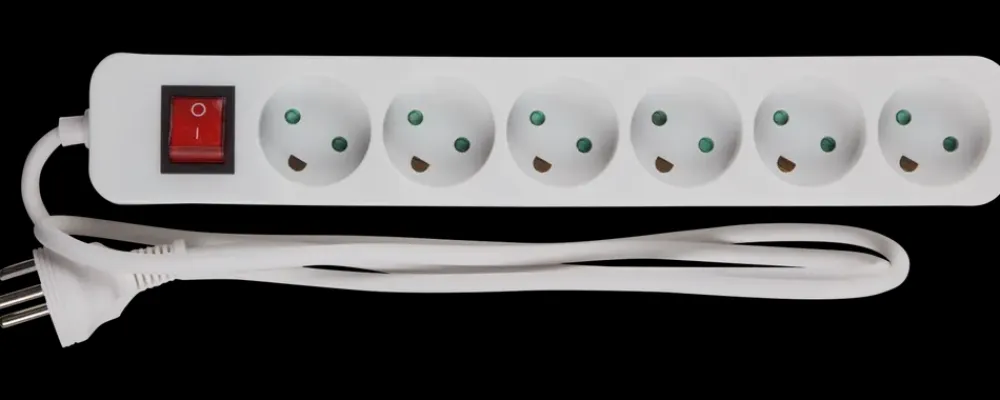 Stikdåse med 6 udtag og jordbeskyttelse samt ledning og stikprop.Endvidere er stikdåsen udstyret med en afbryder og kontrollampe så du nemt og bekvemt kan tænde og slukke for strømtilgangen.