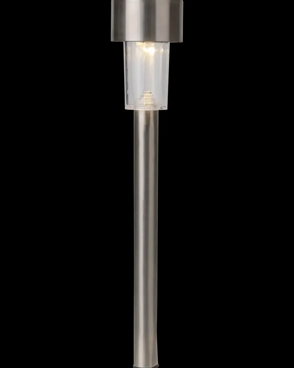 Denne solcellelampe med jordspyd, giver et flot klart lys i din indkørsel, have eller ved terrassen.Lampen er vandtæt og udført i rustfrit stål. Den lader automatisk op om dagen, samt lyser automatisk om aftenen.
