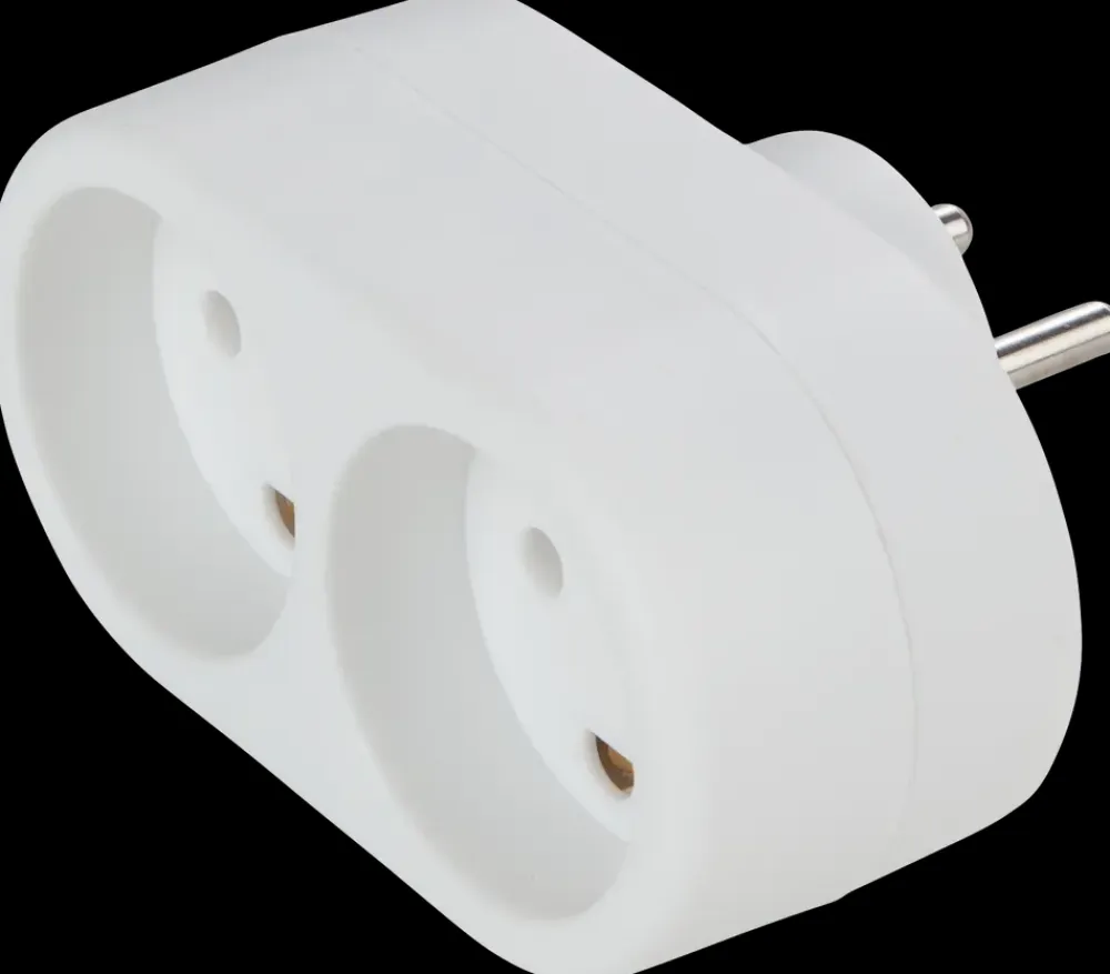 Praktisk stikdåse med 2 runde udtag og jordbeskyttelse.