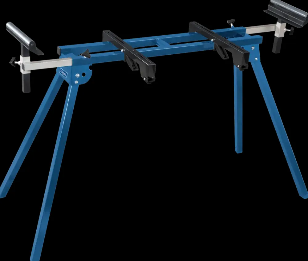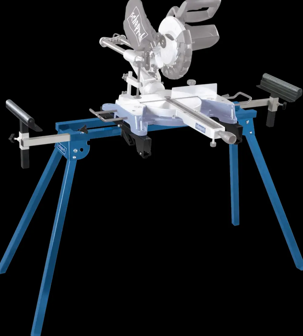 Arbejdsstation som passer til næsten alle kapsave.Robust og let konstruktion.Forsynet med 2 stk. justerbare skinner. Fremstillet i letvægts stål.Sammenklappelig for nem opbevaring og transport. Mål, udfoldet: H. 80,5 – 91,5 x B. 54,5 x L. 93,5 – 194,5 cm. Mål, sammenklappet: H. 15 x B. 25 x L. 91 cm. Stå højde: 91,5 cm.