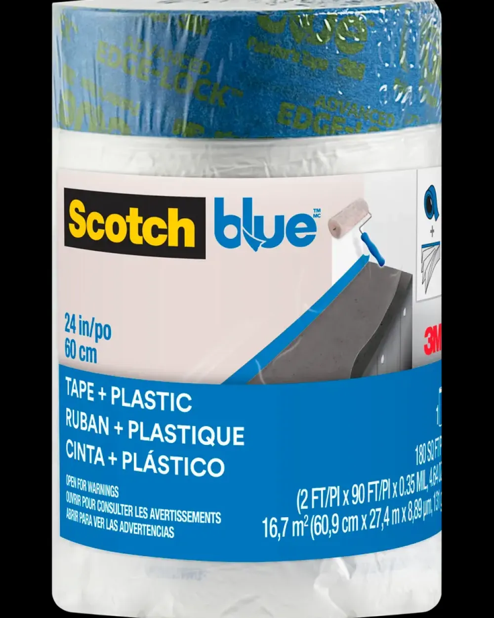 Scotch Blue™ Afdækningsplast Refill med tape – 60,9 cm x 27,4 meter| Afdækning