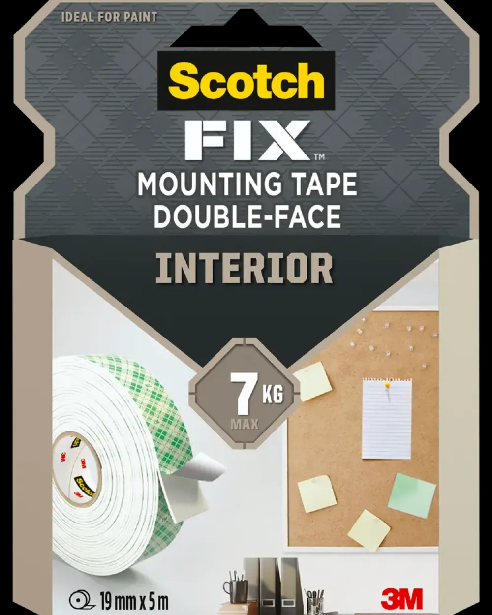 Scotch-FIX™ dobbeltklæbende monteringstape er udviklet til indendørs montering på malede overflader, hvor der ønskes fastgørelse uden brug af skruer eller søm. Tapen anvendes til ophængning og montering af lette til mellemstore genstande som opslagstavler, rammer, kroge og mindre organiseringselementer.Tapen har en maksimal bæreevne på op til 7 kg og er velegnet til brug på glatte og jævne overflader indendørs. Den giver en stabil fastgørelse, når overfladen er ren, tør og korrekt forberedt. Anvendelsen gør det muligt at montere uden at beskadige malede vægge unødigt.Mål: B. 19 mm x L. 5 mAnvendelse: IndendørsMaks. belastning: 7 kg