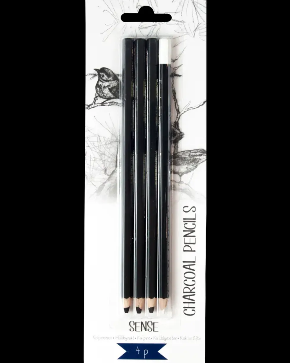 Disse kulblyanter kommer i en 4-pak, hvoraf 3 stk. er kulfarvede, og 1 stk. er hvid. Dermed er du klar til kreative stunder – og kan både viske ud og skabe mange fine effekter.Blyanterne kommer i 3 forskellige hårdheder – hård, medium, blød.