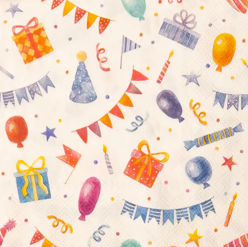 Dæk et flot bord til børnefødselsdagen med disse festlige og farverige servietter med børnevenlige motiver. Bemærk, at der ikke kan vælges variant ved køb i webshoppen.