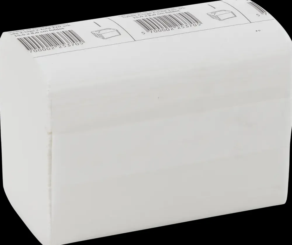 Servietter til servietdispenser.Hvide 2-lags servietter, der er Z-foldet.Mål: 15,5 x 8 cm (foldet).