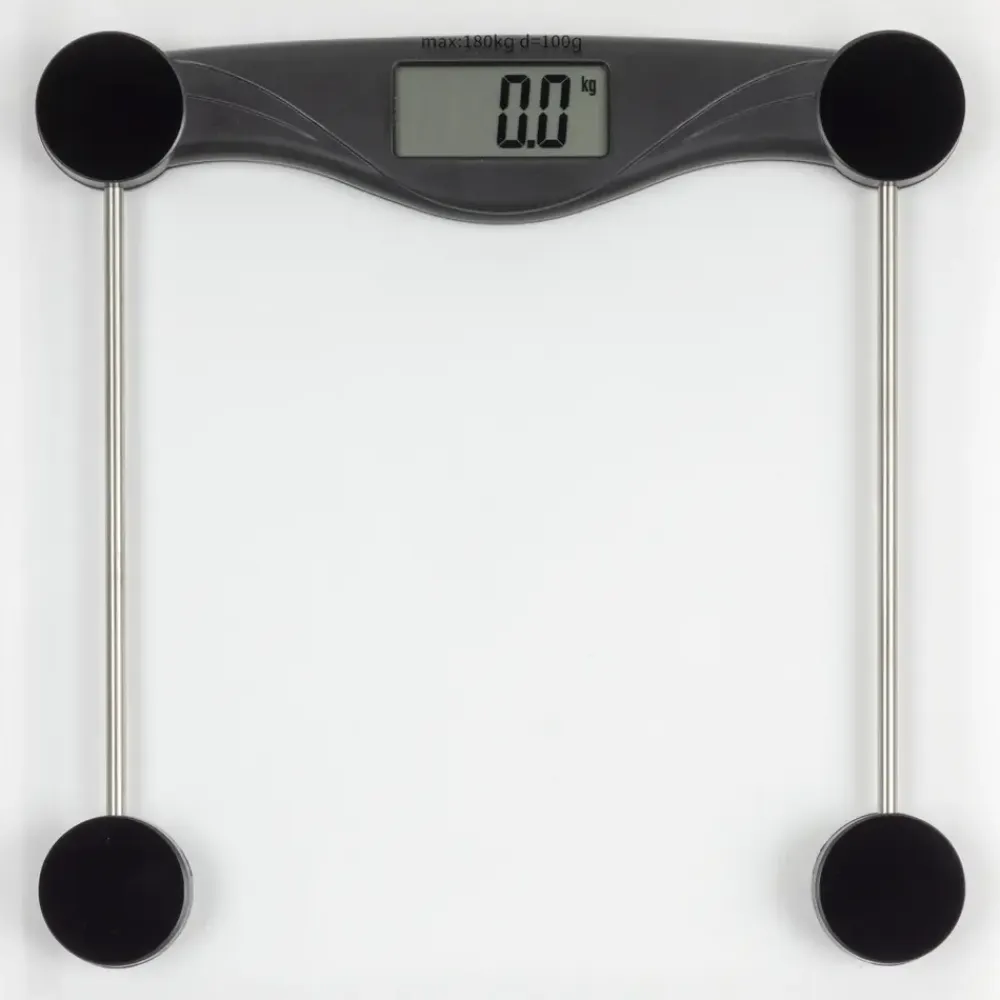 Digital badevægt i glas/alulook med en maksimal kapacitet på 180 kg. Udstyret med automatisk slukkefunktion for at spare batteri. Bruger 1 stk. CR2032-batteri (medfølger).Mål: H. 2,6 x B. 30 x L. 30 cm.