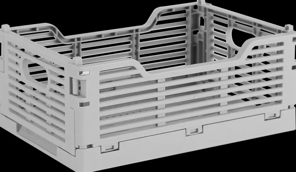 Sammenklappelige opbevaringskasser til organisering af mindre genstande i hjemmet. Kasserne kan anvendes i f.eks. stue, køkken, kontor eller badeværelse og findes i tre størrelser, som dækker forskellige opbevaringsbehov.Kasserne foldes hurtigt ud og kan klappes sammen igen, når de ikke bruges. Den åbne konstruktion giver godt overblik over indholdet og gør det nemt at transportere eller flytte kassen efter behov. Flere kasser kan stables oven på hinanden for pladsbesparende opbevaring.Fremstillet i plast og findes i farverne blå, grå og rosa. Både størrelse og farve vælges ved køb. Følgende størrelser er tilgængelige:Lille: B 15 x L 22 x H 17,5 cm (sælges som 2-pak)Mellem: B 20,5 x L 30,5 x H 12,5 cmStor: B 30 x L 40 x H 15,5 cmDen lille model sælges som 2-pak. De øvrige størrelser sælges enkeltvis.