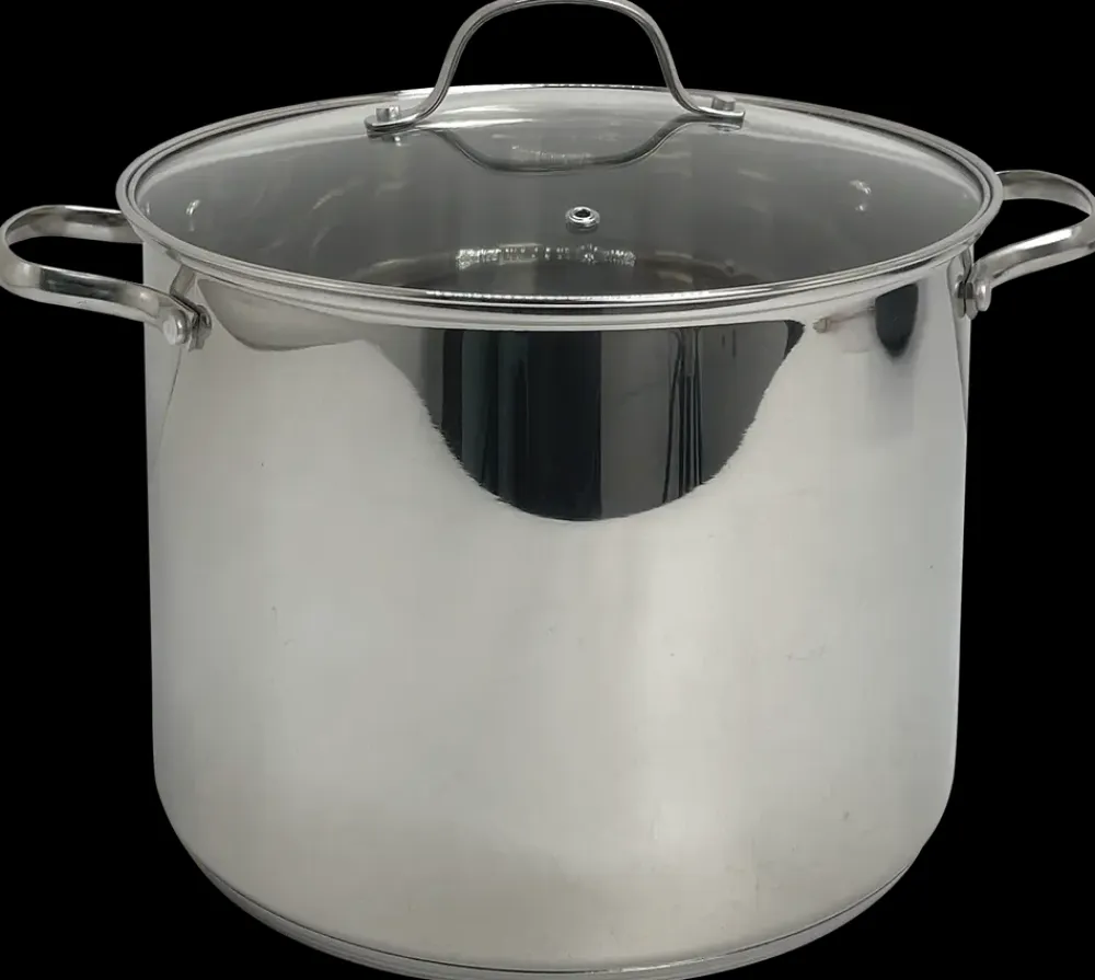 SJÖBO Gryde i rustfrit stål med glaslåg – 10 L| Gryder Og Pander