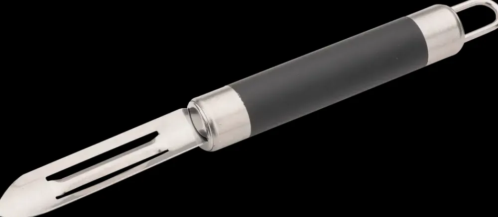 Kartoffelskræller med soft-grip håndtag, der giver et behageligt og sikkert greb.Udstyret med en to-vejs klinge, hvilket gør det muligt at skrælle både fremad og bagud.Skrælleren er fremstillet i rustfrit stål og gummi, hvilket sikrer både holdbarhed og komfort. Tåler maskinopvask.