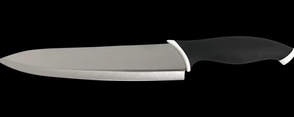Denne kokkekniv er en traditionel lang køkkenkniv.Kokkekniven har alsidige anvendelsesmuligheder da den både kan bruges til at skære kød ud med og til at hakke grøntsager og urter.Kniven har TPR-håndtag og længden på bladet er 20 cm.