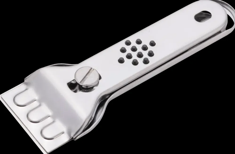 Praktisk glasskraber med udskiftelige blade er ideel til rengøring af glaskeramiske kogeplader, vinduer og andre glatte overflader. Den hjælper effektivt med at fjerne fastbrændte madrester og snavs uden at ridse overfladen.Skraberen har en justerbar overdækning, der kan skubbes frem og tilbage for at beskytte eller eksponere knivbladet. En skruefunktion sikrer, at bladet låses fast under brug og nemt kan løsnes ved udskiftning.Produktmål: 4,5 x 13,2 x 2 cm.