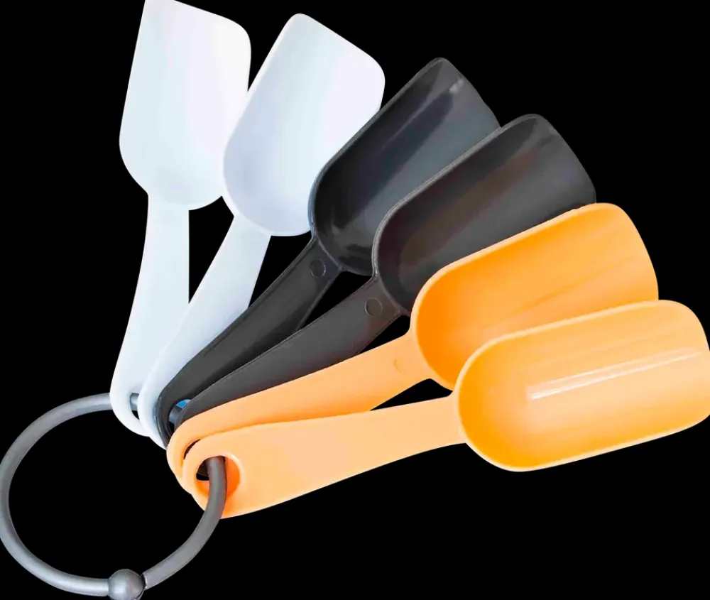 Krydderiskeer i 3 forskellige farver.I et sæt er der 2 af hver farve.