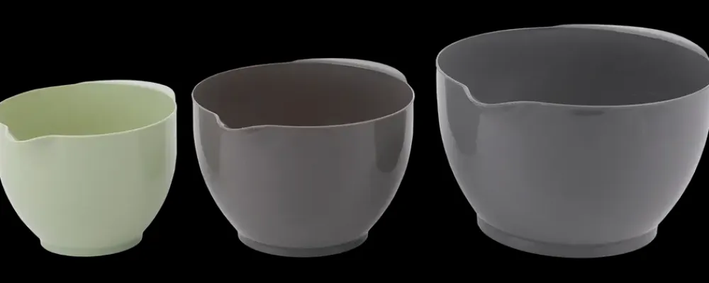 Røreskålesæt i en praktisk 3-pak. Sættet indeholder skåle med kapaciteter på 1,2 liter, 2,0 liter og 3,3 liter. Skålene er designet til at kunne stables i hinanden for pladsbesparende opbevaring. Fremstillet af robust og fødevaregodkendt PP-plast, som tåler både fryser og opvaskemaskine, og kan bruges i mikrobølgeovn (dog uden låg).Temperaturbestandighed fra -20°C til +100°C.