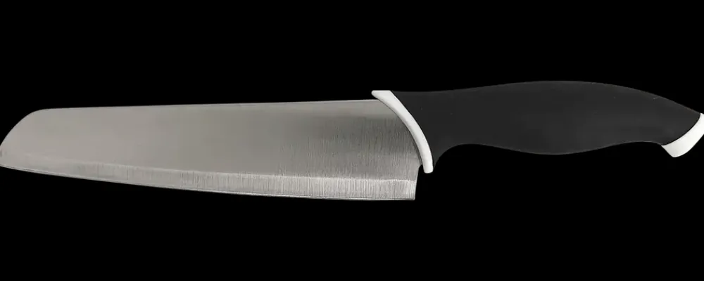 Santokukniv med en totallængde på 29 cm – selve bladet har en længde på 12 cm.Denne asiatiske køkkenkniv er god at have ved hånden til tilberedning af både kød, fisk og grøntsager.Kniven har TPR-håndtag.