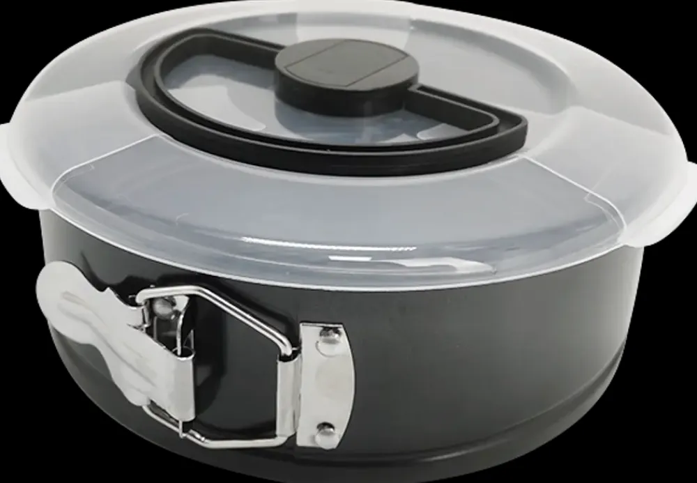 Springform med låg som har en omkreds på 20 cm og som tåler op til 200°C.Formen har keramisk belægning så kagen ikke hænger fast under bagning.Det medfølgende plastlåg gør den færdige kage nem at transportere og opbevare.Springformen er let at rengøre.Det anbefales at vaske formen op i hånden for at skåne belægningen.Brug altid træ- eller plastikredskaber for at beskytte formen og forlænge dens levetid.