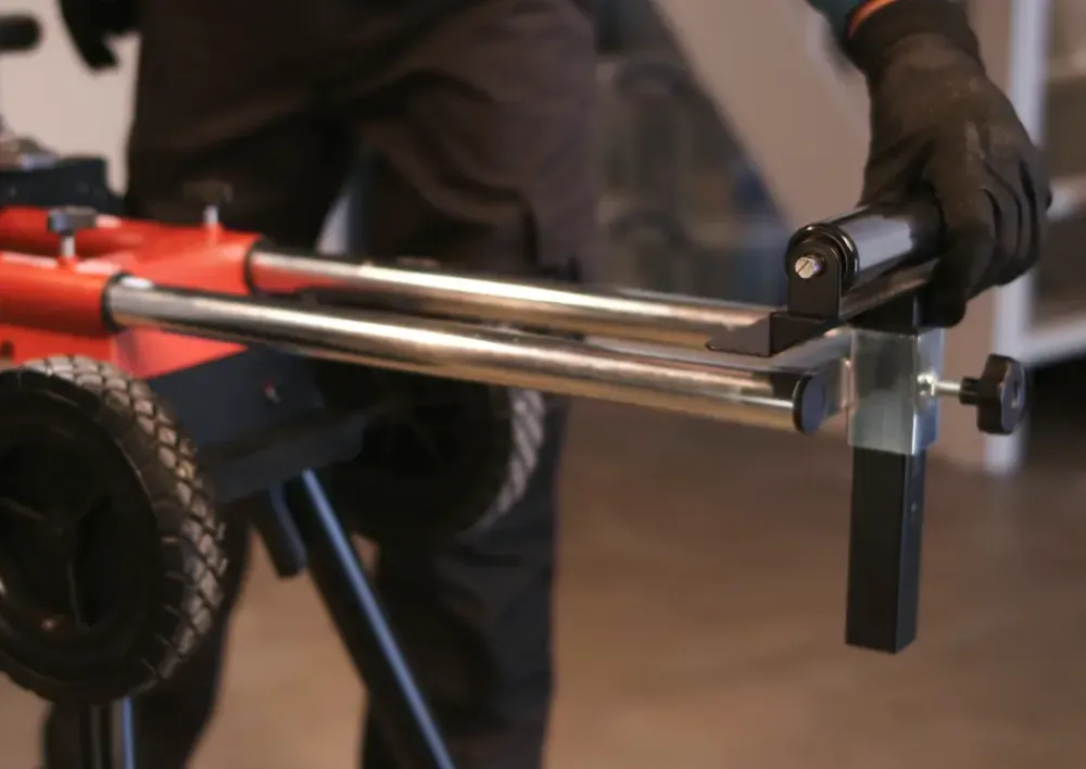 Stabilt SKIL 1300 bord til kap- og geringssav.Bordets 20 cm store hjul gør det enkelt at transportere og har sammenfoldelige ben for nemmere opbevaring.Bordets integrerede ben kan klappes ud uden brug af værktøj ved hjælp af hurtigfastspændingssystemet.Med universalkonsoller og skruehuller anbragt i et rektangulært mønster.Bordet leveres med støttearme, der kan forlænges til lange emner og som kan justeres vandret og lodret. Det har også ruller af høj kvalitet og længdestop til gentagne snit.Længde (uden forlængelse): 120 cmMaks. længde: 203 cm.Hjul: Ø20 cm.Hurtigfastspændingssystem.Universalkonsoller.Støttearme.Længdestop.