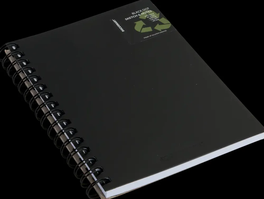 Sort A5 skitseblok med spiral i ryg.110 g papir.60 ulinjeret ark.