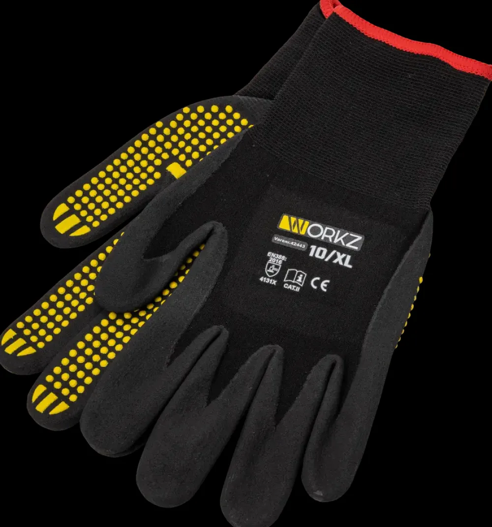 Slidstærk arbejdshandske med dots i håndfladen for et sikkert og stabilt greb, uanset om arbejdet udføres i vådt eller tørt miljø. Handsken er fremstillet af fleksibelt materiale, der giver optimal fingerføling og komfort under brug.Størrelse 10.