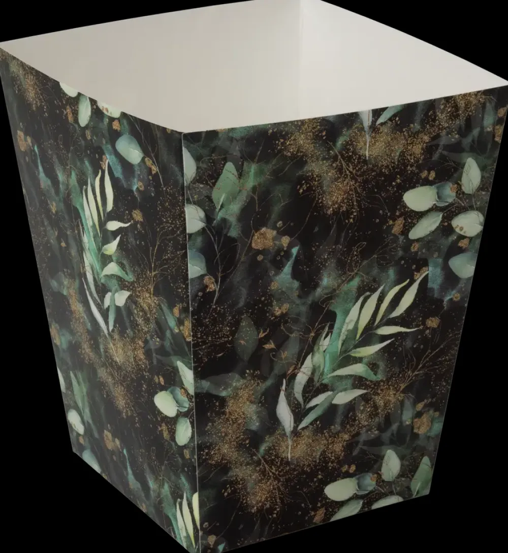 Snackbox til popcorn og andre snacks, leveret i en praktisk 4-pak. Disse bokse er ideelle til servering af popcorn, chips eller andre lækkerier ved festlige lejligheder eller filmaftener. Med en højde på 14 cm er der plads til rigelige portioner, og den sammenfoldelige funktion gør dem nemme at opbevare, når de ikke er i brug. Boksen er dekoreret med et elegant naturmotiv, der passer til mange temaer og begivenheder.