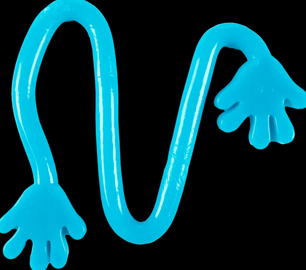En elastisk slimhånd til leg, hvor lange kast og stræk giver underholdning for børn fra 3 år. Hånden kan bruges til at gribe og ramme glatte overflader, hvilket gør den egnet til indendørs aktiviteter og korte legepauser.Den fleksible konstruktion giver mulighed for at strække legetøjet op til flere meter, og den klæbende overflade gør, at hånden kortvarigt hæfter på mange typer underlag. Produktet kan anvendes igen og igen ved almindelig leg og giver variation gennem de forskellige farver, det leveres i.Modellen måler B. 8 x L. 26 cm og er fremstillet af polyethylen. Farverne varierer mellem gul, pink, blå og grøn. Anbefalet alder er 3+.Farve kan ikke vælges ved køb i webshoppen.