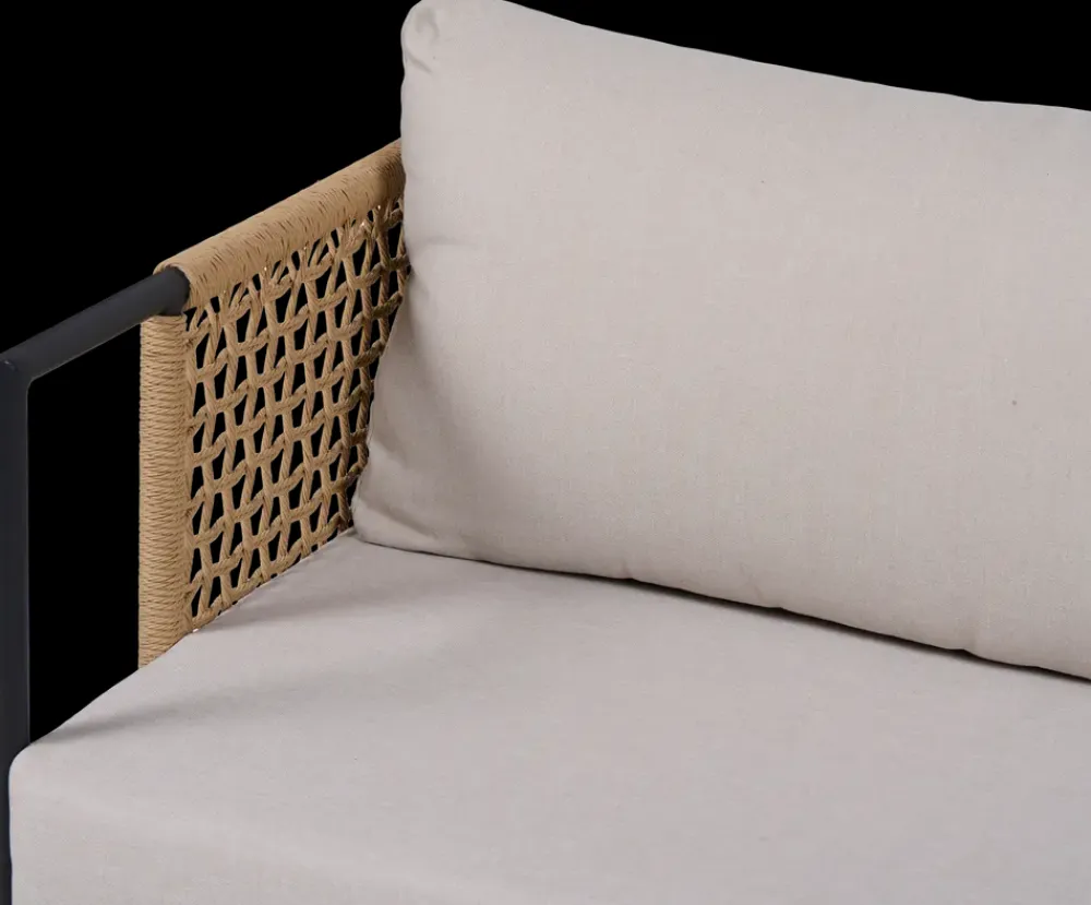 Dette flotte loungesæt kombinerer moderne stil og funktionalitet med et naturligt design. Sættet består af en sofa, to stole og et bord, alle med stel i aluminium og flettede detaljer i rope-materiale for et elegant udtryk. Bordet har en spraystone-top, som tilføjer et flot, tekstureret look. De tilhørende puder med 10 cm tykkelse sikrer høj siddekomfort. Sættet kræver minimal vedligeholdelse og er velegnet til både terrasse og have.Indhold i sættet:2 stole: B72 x D69 x H70 cm (beregnet til én person pr. stol).1 sofa: B186 x D69 x H70 cm (komfortabel til 2 personer).1 bord: B115 x D60 x H42 cm.Mål og specifikationer:Siddehøjde: 41 cm.Sædedybde: 67 cm.Armlænshøjde: 70 cm.Hyndetykkelse: 10 cm.Materiale og detaljer:Stel: Aluminium.Flet: Rope-materiale.Bordplade: Spraystone.Hynder: PFAS-frit polyester.