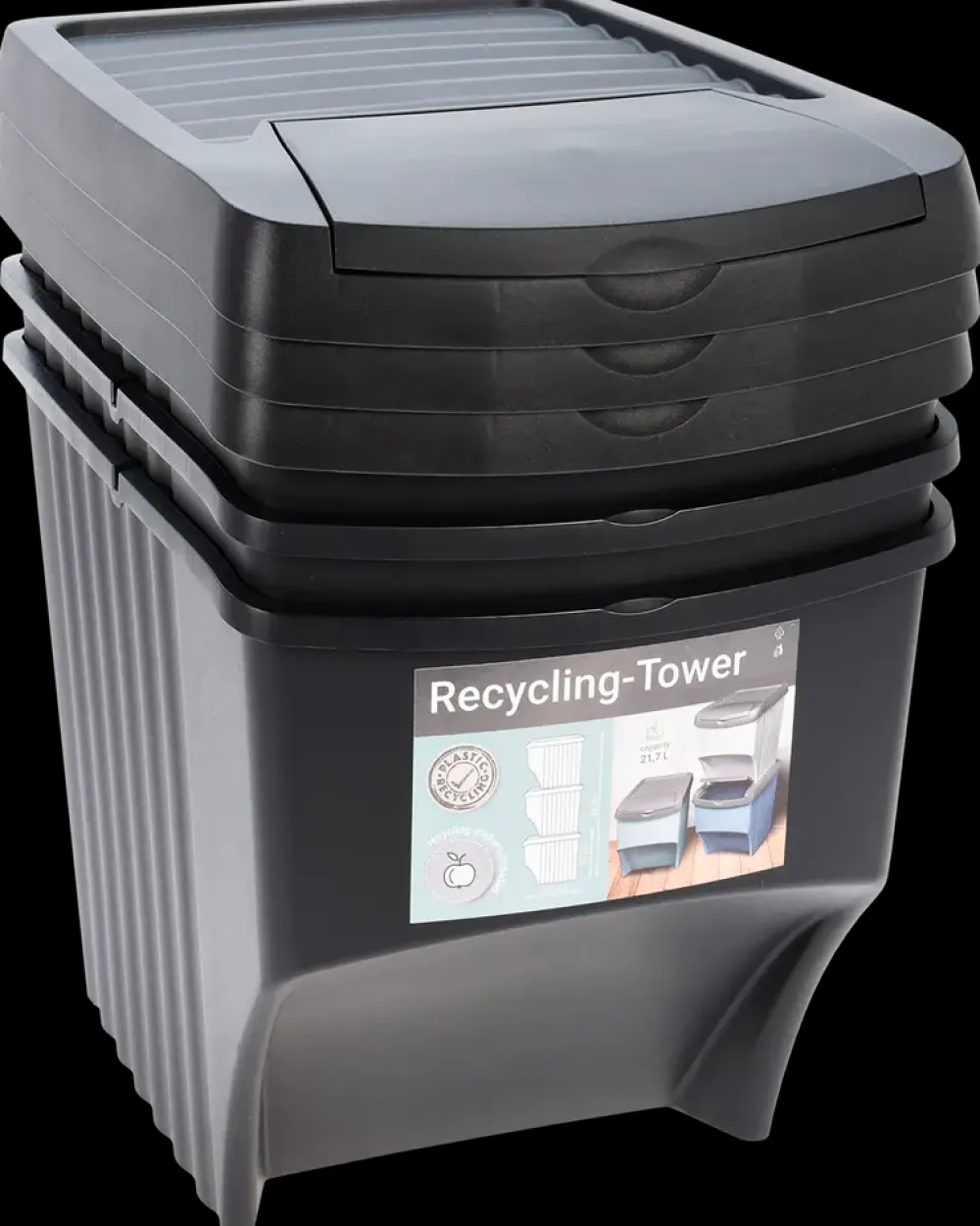 Gør sorteringen til en leg med dette sorteringssystem, bestående af 3 sorte plastkasser. Plastkasserne kan stables ovenpå hinanden, når de er i brug. Der medfølger et sæt klistermærker, som kan påsættes de enkelte kasser for, at vise hvad der skal i den pågældende kasse.Kapacitet pr. kasse: 22 liter.Mål på 1 kasse: H. 33 x B. 30 x D. 40 cm.Total mål når kasserne er stablet ovenpå hinanden: H. 100 x B. 30 x D. 40 cm.