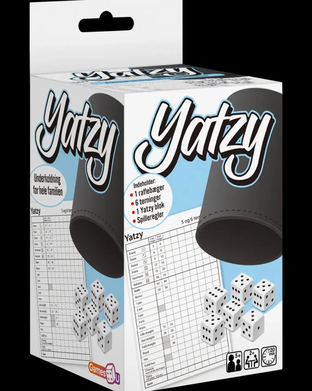 Yatzy er et klassisk terningspil, som samler familien om sjov og konkurrence.Spillet går ud på at opnå bestemte terningekombinationer og samle flest mulige point. Det kan spilles af to eller flere personer og byder på underholdning i både korte og længere spilomgange.Yatzy egner sig til børn fra fem år og opefter og har en spilletid på over tyve minutter. Det er velegnet til hjemmebrug, ferier og hyggelige stunder med familie og venner.ADVARSEL Ikke egnet til børn under tre år på grund af små dele Risiko for kvælningSpecifikationer:Anbefalet alder fra fem årAntal spillere to eller flereSpilletid tyve minutter eller mereMateriale raflebæger i plastTerninger hvide med sorte prikkerFarve raflebæger sortPakkens indhold:Et raflebægerSeks terningerEn blyantEn Yatzy-blokSpilleregler