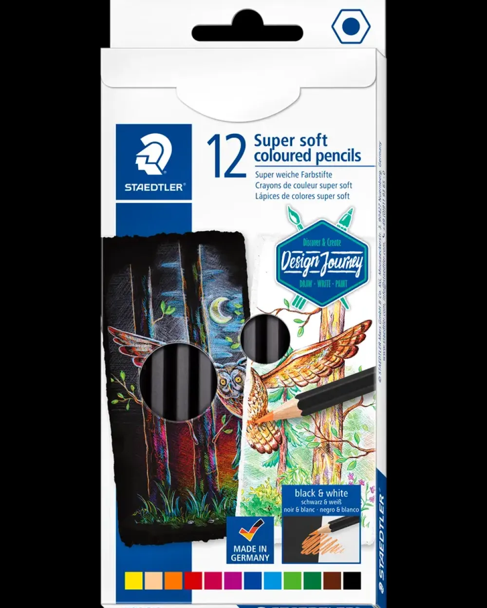 Staedtler® Super soft kvalitets farveblyant i klassisk sekskantet form med super blød mine, der giver ekstra høj dækkeevne.Skab fantastiske effekter på både hvidt og sort papir.Træ fra certificerede, bæredygtigt forvaltede skove.Made in Germany.