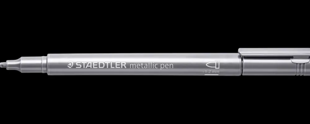 Staedtler® Metallic pen.Til skrivning, tegning, dekoration, scrapbog m.m.Farven kan ses på mørkt papir og karton.Farve: Guld, sølv, rosa, grøn og blå.Stregbredde: 1 til 2 mm.