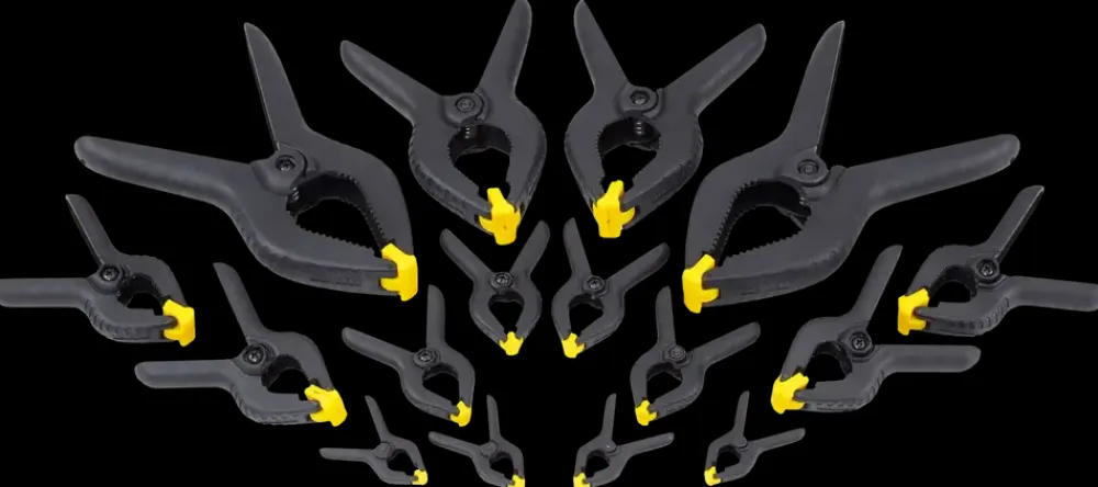 Praktiske limklemmer i plast fra Stanley.Kan anvendes til mange formål.Limklemmen sikrer dig en høj kvalitet, når du sætter f.eks. 2 plader sammen.Pakken indeholder følgende klemmer med spændvidde:2 stk. x 75 mm2 stk. x 63 mm4 stk. x 38 mm4 stk. x 25 mm4 stk. x 19 mm