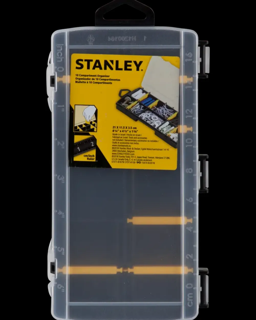 Kompakt sortimentsboks fra stanley med aftagelige rumdelere og klart låg.Afrundede kanter i hvert rum gør det nemmere at få fat i mindre dele.Indbygget lineal til hurtige og praktiske afmålinger.Fremstillet af polypropylen som øger sortimentsboksens holdbarhed.Antal rum: 10.