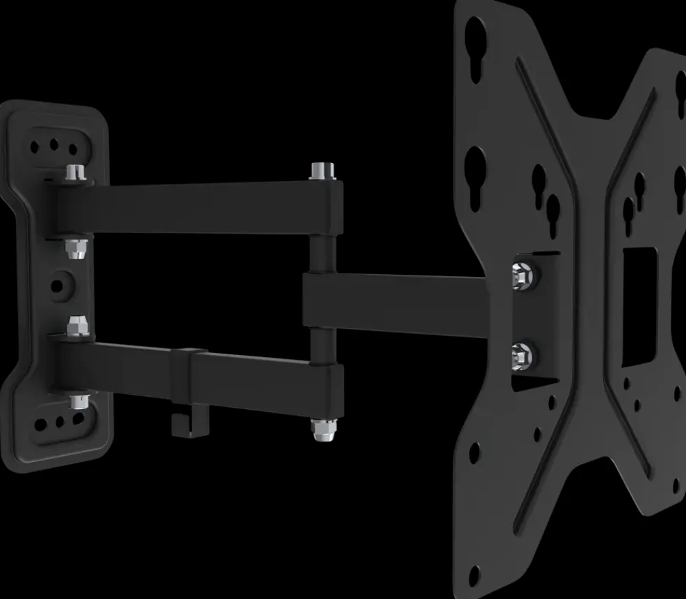 TV-vægbeslag fra Stevison med full-motion, fri vipning som giver nem vinkeljustering og med nøglehulsplade, som tillader nem installation af TV. Passer til de fleste 23″ – 42″ LCD-, LED- og plasma-fladskærme.Kabelbindere holder kablerne organiseret og beskyttet.Hældning: -15° til +15°.Rotérbar: 180°.Afstand til væg: 49 – 393 mm.