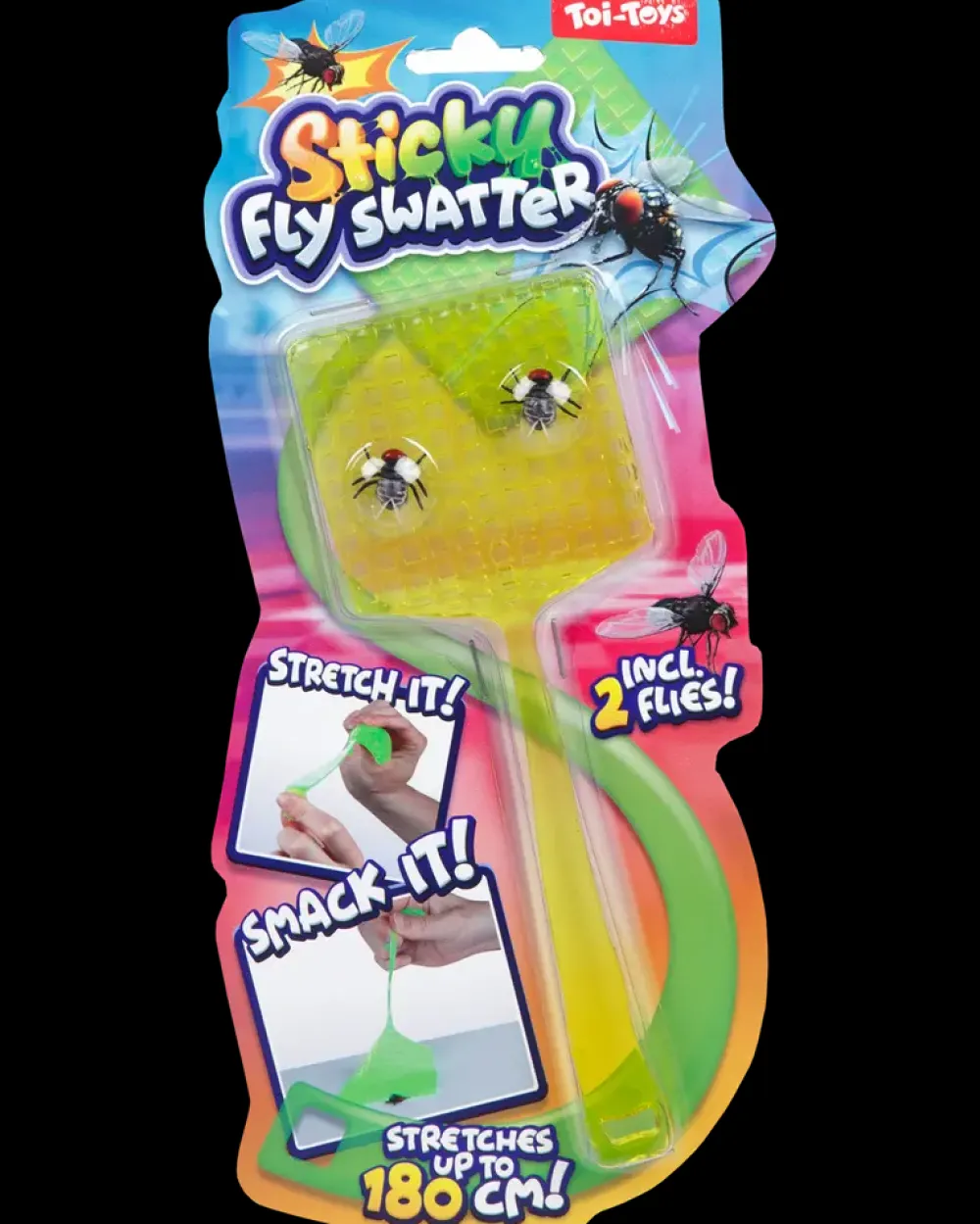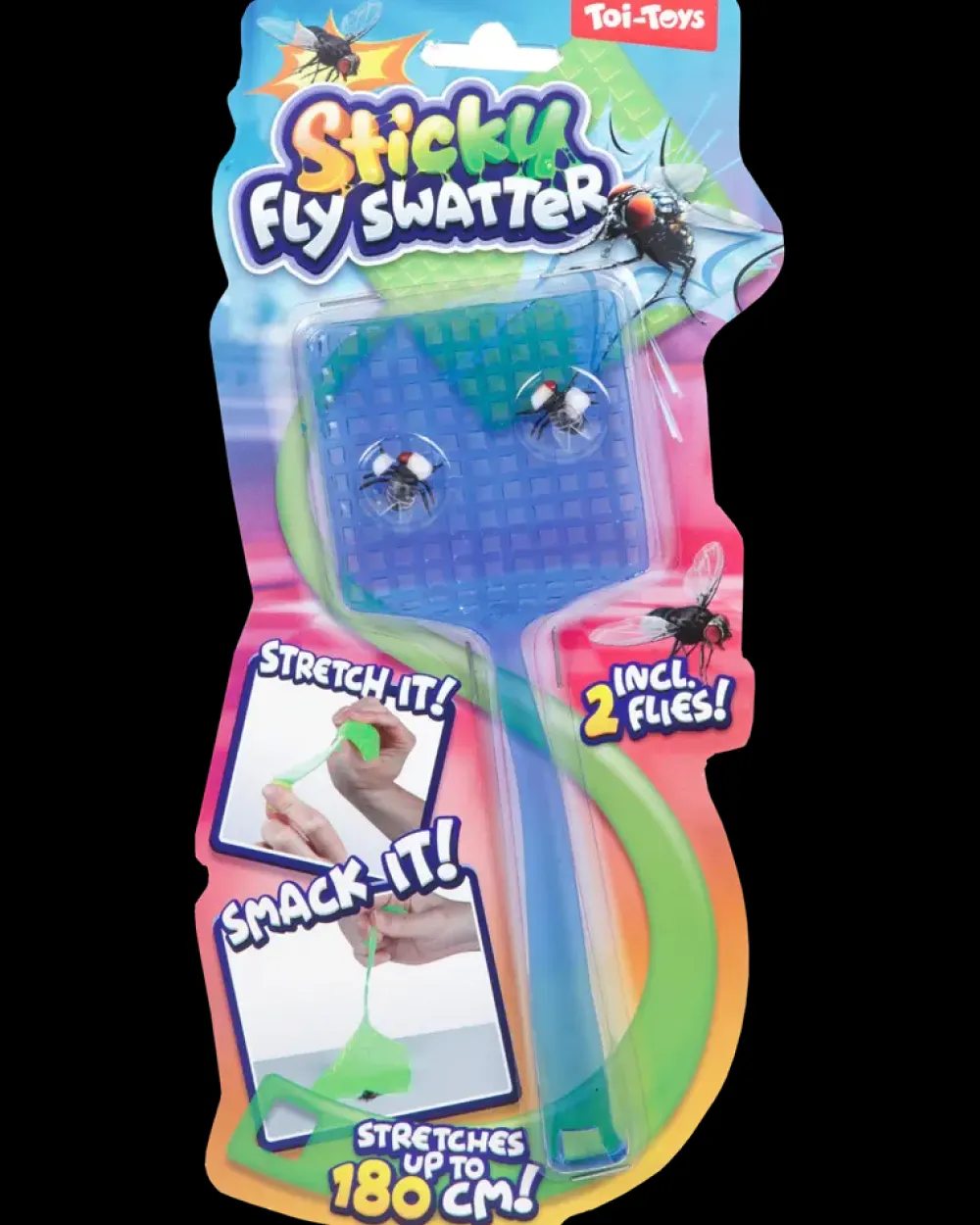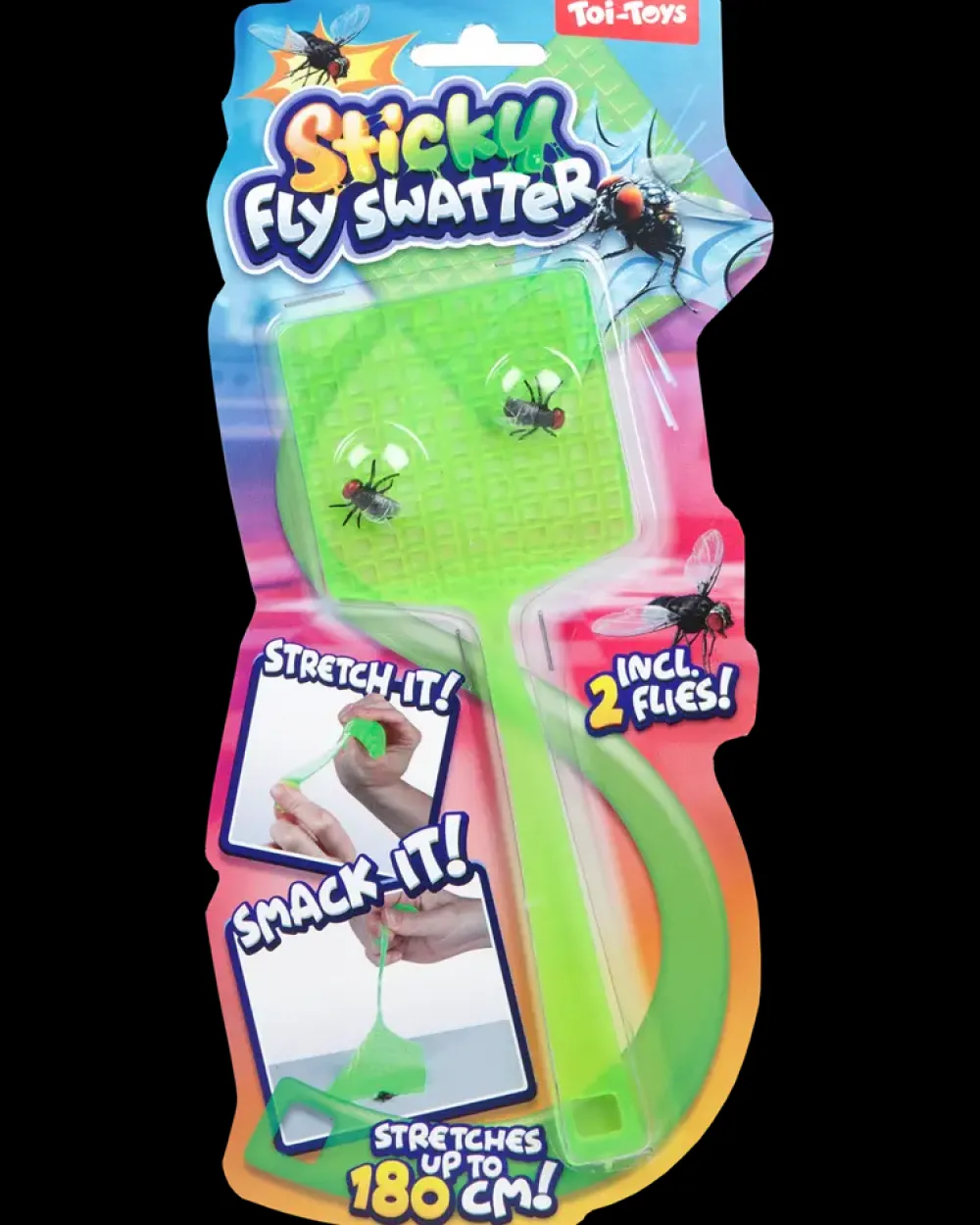 Sæt med klistrende og strækbar fluesmækker samt 2 medfølgende fluer. Fluerne kan placeres på forskellige overflader, hvorefter man kan forsøge at fange dem med fluesmækkeren. Den fleksible konstruktion gør det muligt at strække fluesmækkeren op til 180 cm.Produktet er fremstillet i TPR og PVC og leveres i assorterede farver: rød, blå, gul og grøn.Bemærk, at farve ikke kan vælges ved køb i webshoppen.