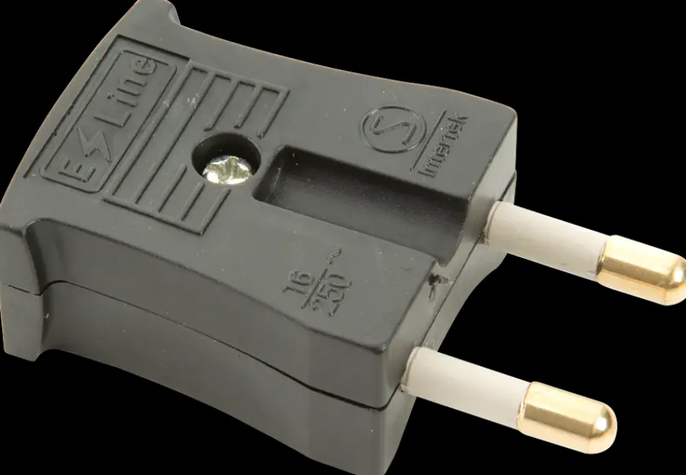 Lille og flad stikprop som med fordel kan placeres ved siden af et rundt stik i en dobbeltstikkontakt.