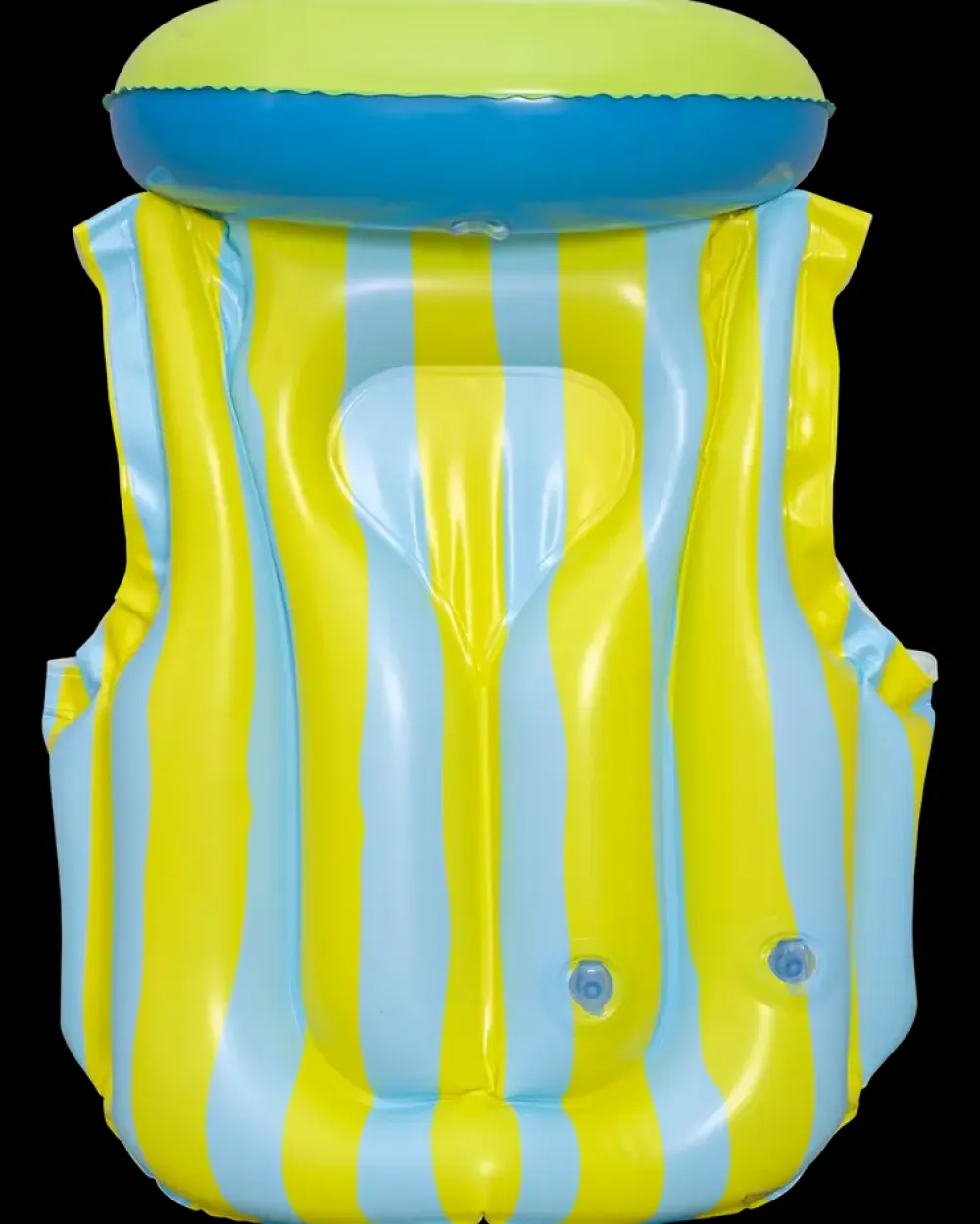 Svømmevest til børn i alderen 3–6 år, beregnet til vandleg og svømmetræning under opsyn. Vesten bæres som en vest og giver opdrift i vandet, så barnet kan bevæge sig mere stabilt i poolen eller ved lavt vand.Svømmevesten er oppustelig og opbygget med to separate luftkamre, som bidrager til øget sikkerhed og jævn opdrift. Den lukkes foran med to justerbare spænder, som gør det muligt at tilpasse pasformen til barnet. Den høje krave giver ekstra støtte omkring nakke og øvre ryg.Overfladen er udført i glat plastmateriale med stribede farver og trykte figurer fra Lilo & Stitch. Vesten er let og fylder begrænset, når den er tømt for luft, hvilket gør den nem at tage med på ferie eller til svømmehallen.Velegnet som svømmehjælp til leg og introduktion til vand.Tekniske detaljer og målAnbefalet alder: 3–6 årType: Oppustelig svømmevestLuftkamre: 2Lukning: Justerbare spænderFarve: Gul og lyseblå med motiv