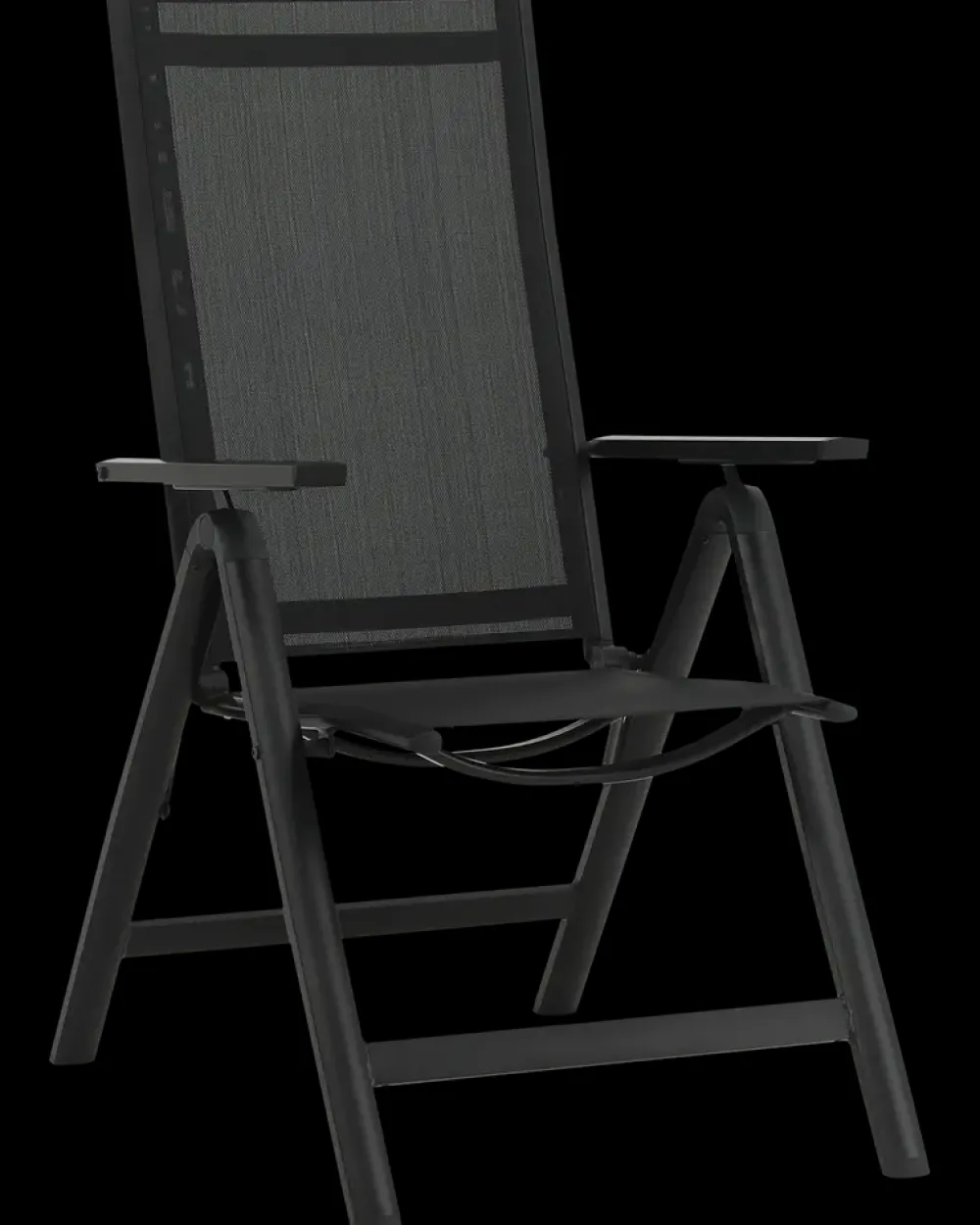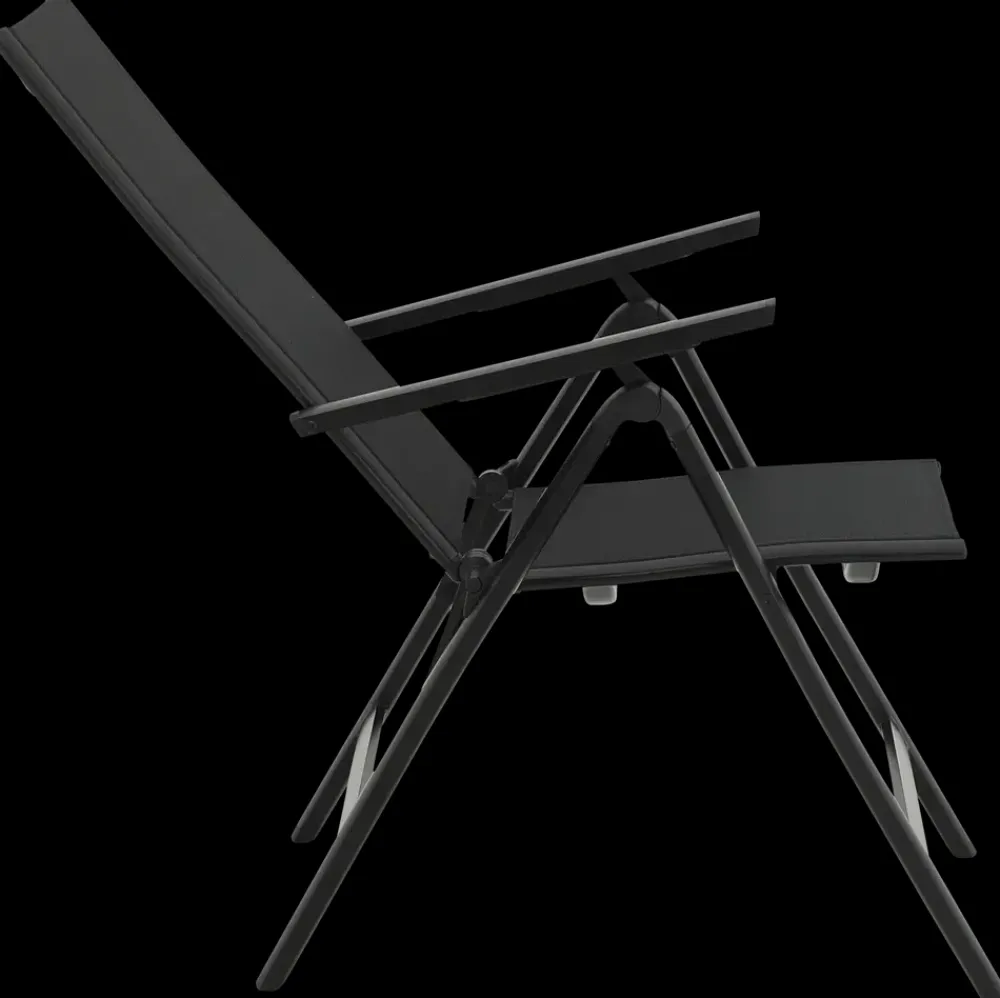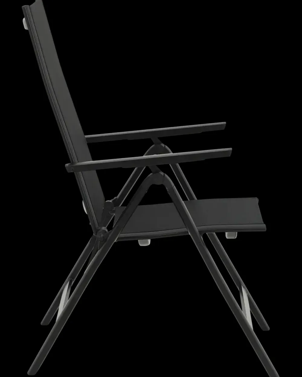 Sammenklappelig havestol i sort aluminiumsstel med vejrbestandigt sæde og ryg i textiline. Stolens 7 justerbare positioner giver fleksibilitet og komfort, der passer til forskellige behov. Den lette konstruktion gør stolen nem at flytte, og det sammenklappelige design sikrer praktisk opbevaring. God til terrassen, altanen eller haven.Sæde: Bredde 45 cm x Dybde 45 cmTotalhøjde: 110 cmHøjde til armlæn: 66 cmSiddehøjde: 45 cmMaksimal belastning: 110 kg