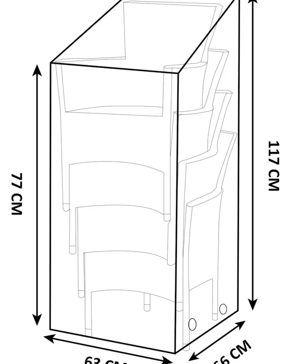 Stoleovertrækket bruges til at beskytte udendørs stole og stabelstole mod regn, støv og sollys. Det er fremstillet af 75gsm Oxford-stof med PU-belægning, som giver en let håndtering og en vandafvisende overflade. Overtrækket kan dække stole stablet op til en højde på 117 cm.Alu-øjer langs kanten giver ventilation, så fugt kan slippe ud under brug. Overtrækket rengøres med en fugtig klud og skal være helt tørt, før det lægges til opbevaring.