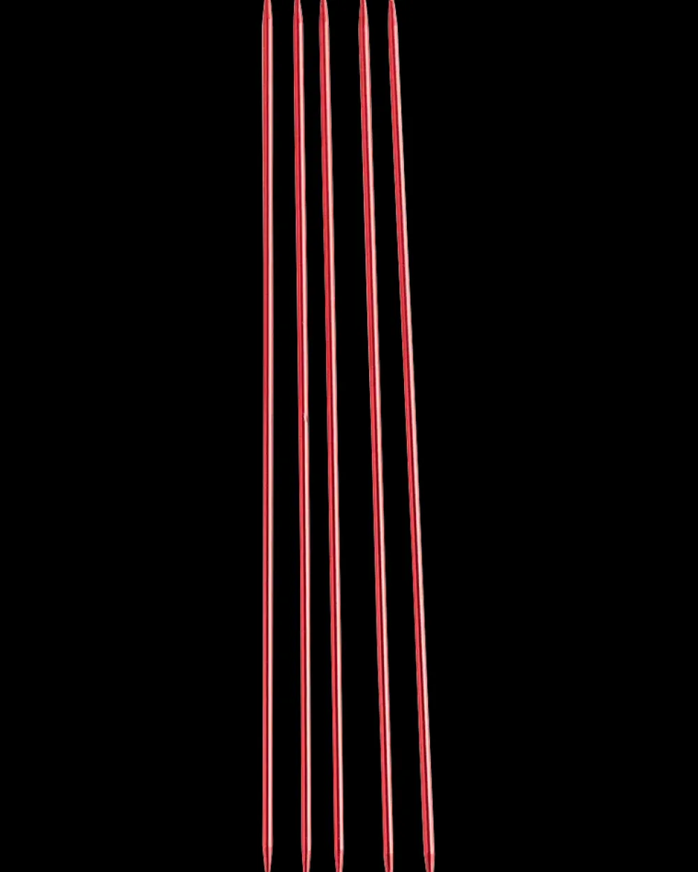 Strømpepinde i aluminium. Aluminiumsmaterialet gør pindene lette at arbejde med og rare at have i hænderne – også over flere timer. Spidserne er perfekt udformet – hverken for spidse eller for runde – hvilket gør dem behagelige at arbejde med, når man vil strikke rundt på 5 pinde.