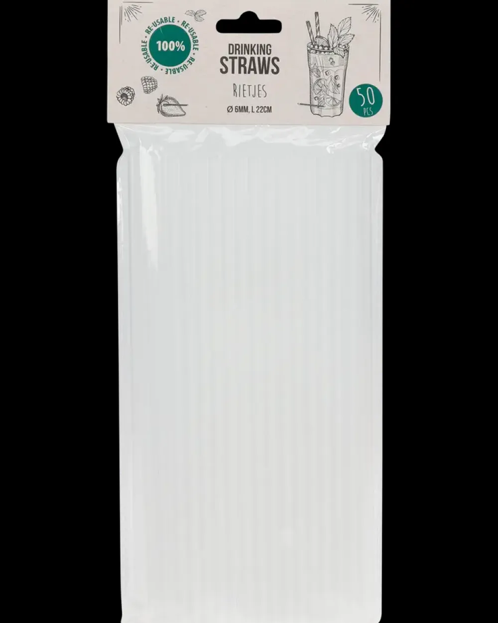 Genanvendelige sugerør fremstillet i robust PP-plast.Materialet er genanvendeligt og let at rengøre, hvilket reducerer behovet for engangsprodukter. Den hvide frostede finish tilføjer et elegant udtryk, som passer til enhver type drik og begivenhed.Længde: 22 cm.Antal: 50 stk.