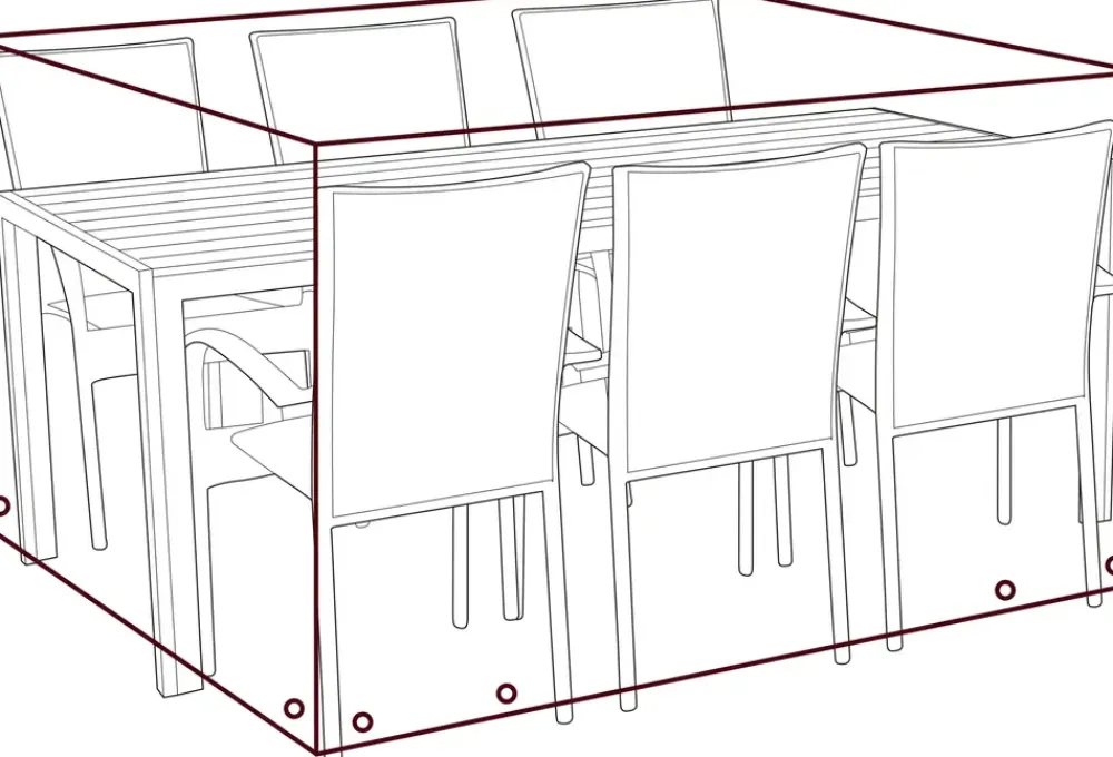 Praktisk møbelovertræk i kraftigt PVC-coated nylon.Passer til havemøbelsæt med bord B. 90 x L. 200 cm med seks stole.