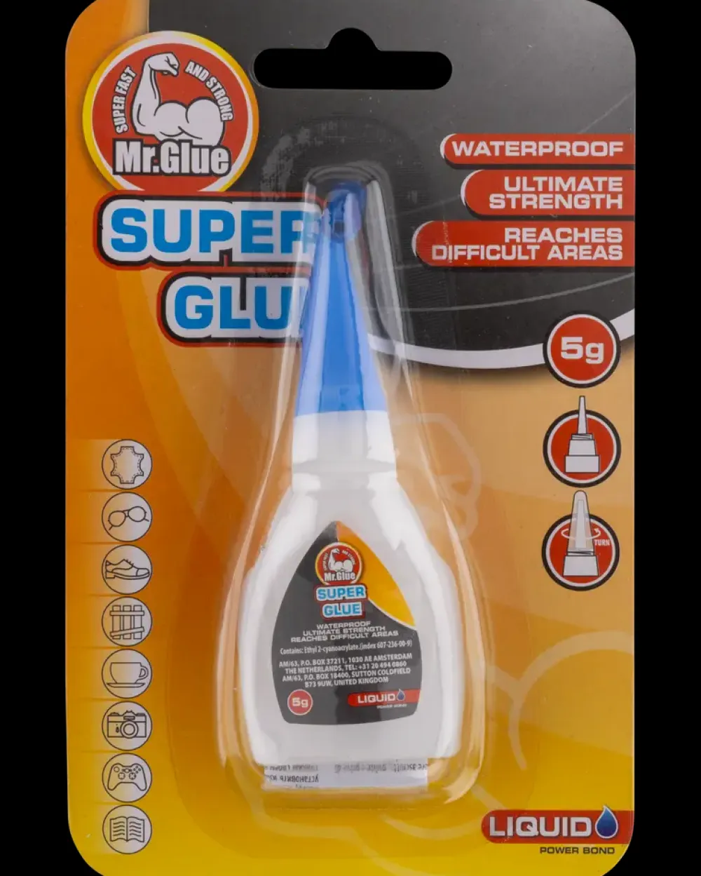 Super Glue er en flydende sekundlim, der anvendes til hurtig samling af både glatte og porøse materialer som plast, metal, porcelæn, læder, keramik, pap, papir og gummi. Den egner sig til mindre reparationer i hjemmet, hobbybrug og præcisionsarbejde, hvor der ønskes en stærk binding på kort tid.Den flydende konsistens gør det muligt at fordele limen jævnt i tynde lag. De sammenføjede emner kan justeres i kort tid efter påføring. Limen hærder hurtigt og opnår en stærk samling inden for 10–180 sekunder afhængigt af materiale og mængde. Overfladerne skal være rene, tørre og fri for fedt før brug.Produktet er ikke egnet til fotos, bilruder eller polystyren.