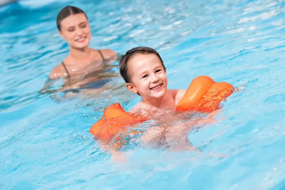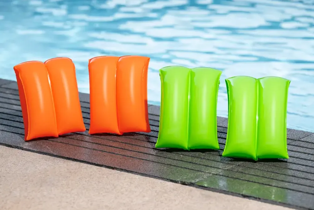 Svømmeluffer til børn, der giver ekstra opdrift under leg og bevægelse i vandet. Lufferne bæres på overarmene og understøtter barnets naturlige bevægelser, så armene kan roteres frit. De kan anvendes i pool og ved strand, hvor der er behov for ekstra sikkerhed i vandet.Hver luffe er opdelt i to luftkamre, som bidrager til stabil opdrift. Konstruktionen gør dem velegnede til børn, der øver sig i at bevæge sig i vand og opnå tryghed under svømmetræning og leg. Lufferne pustes manuelt op og er nemme at tage af og på.Mål: H. 22 x B. 17 x D. 12,5 cmMateriale: PVCFarve: AssorteretVariant kan ikke vælges ved køb i webshoppen.