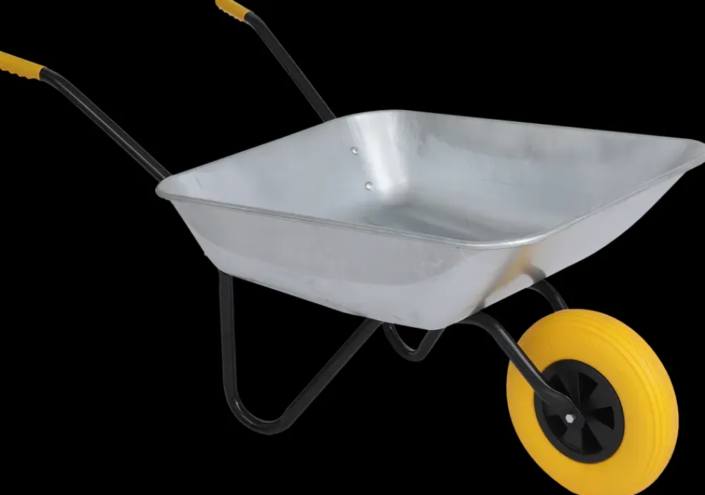 Trillebør med galvaniseret stålkasse.Materiale: Galvaniseret stål.Kapacitet: 80 liter.Hjul: PU-hjul.