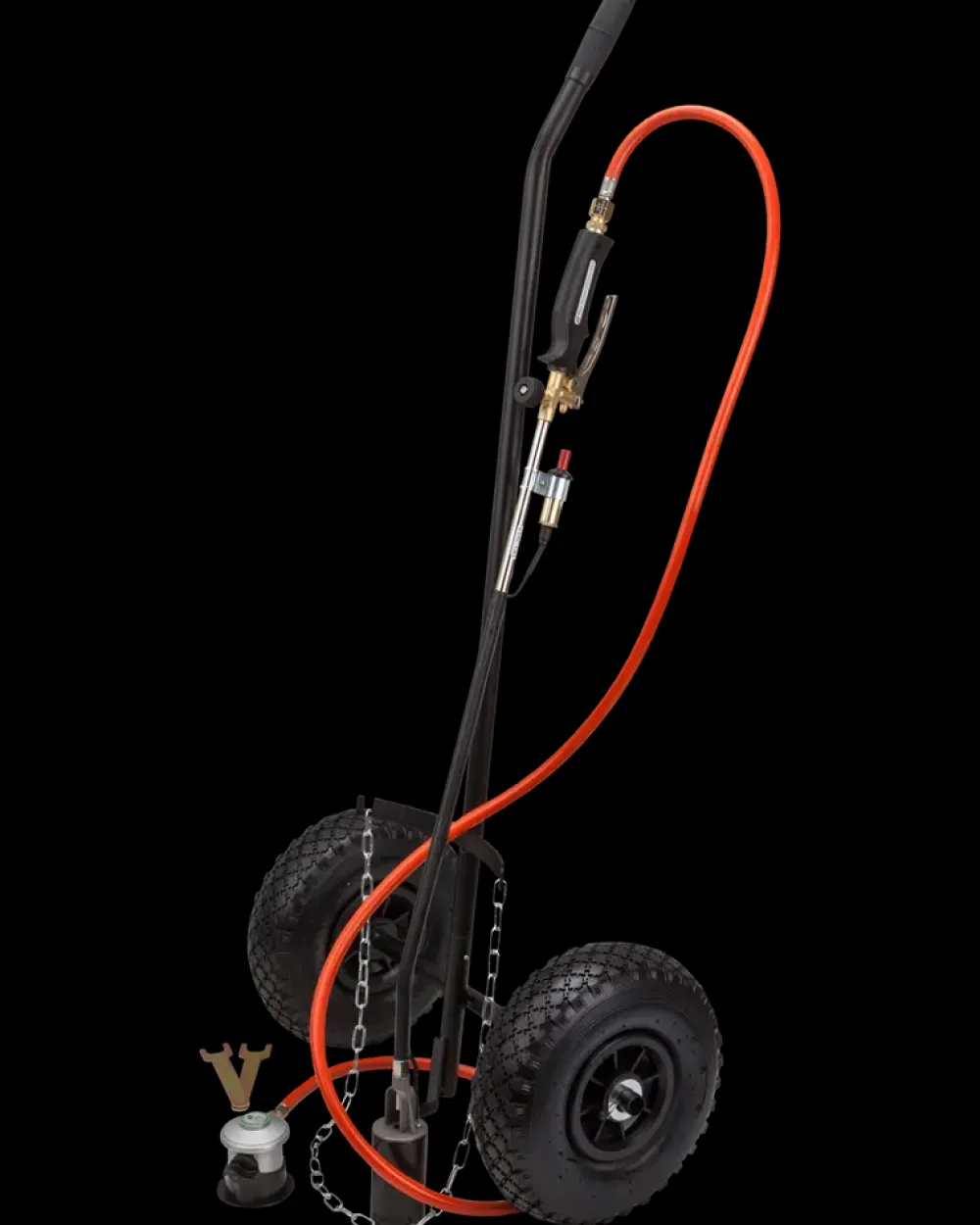 Elektronisk tænding med 2 meter slange, regulator for 11 kg gasflaske og flaskevogn.Den kraftige og effektive flamme gør det muligt at behandle selv store områder hurtigt og nemt.Leveres uden gasflaske.