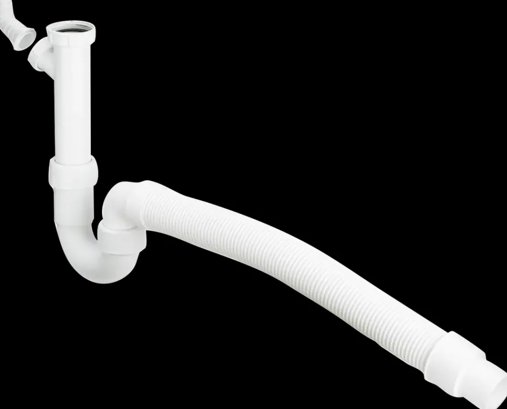 Vandlås med studs til vaske- og opvaskemaskine. Benyttes som afløb fra stålvask. Flex afgangsrør for lettere montage.