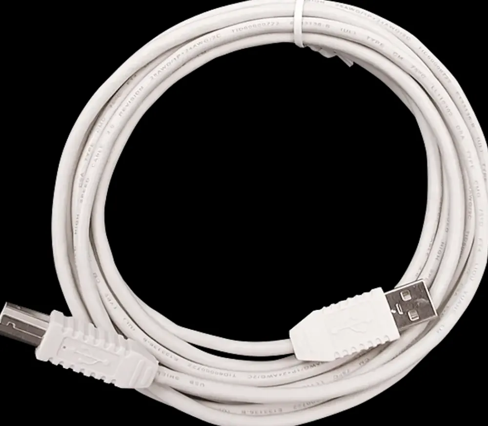 USB 2.0 kabel til brug mellem PC og eksterne enheder, såsom printere, scanner m.v.A stikket finder man typisk i computere og USB hubs.B stikket finder man derimod i det eksterne udstyr som f.eks printere, digitalkameraer, og scannere, der skal tilkobles computeren.
