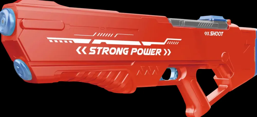 Elektrisk vandpistol til leg og vandkamp med kontinuerlig vandstråle. Vandpistolen er batteridrevet og betjenes via aftrækker, hvilket giver et jævnt vandtryk under brug uden manuel pumpning.Vandpistolen har en rækkevidde på 4–6 meter og er velegnet til udendørs leg i haven, ved poolen eller på stranden. Vandtanken har en kapacitet på 500 ml. Produktet er fremstillet i plast og er let at håndtere.Vandpistolen bruger 4 stk. AA-batterier (medfølger ikke).Mål: H. 18,5 x B. 53 x D. 4,9 cmKapacitet: 500 mlRækkevidde: 4–6 mMateriale: ABS, PP, PVCFarve kan ikke vælges ved køb i webshoppen.