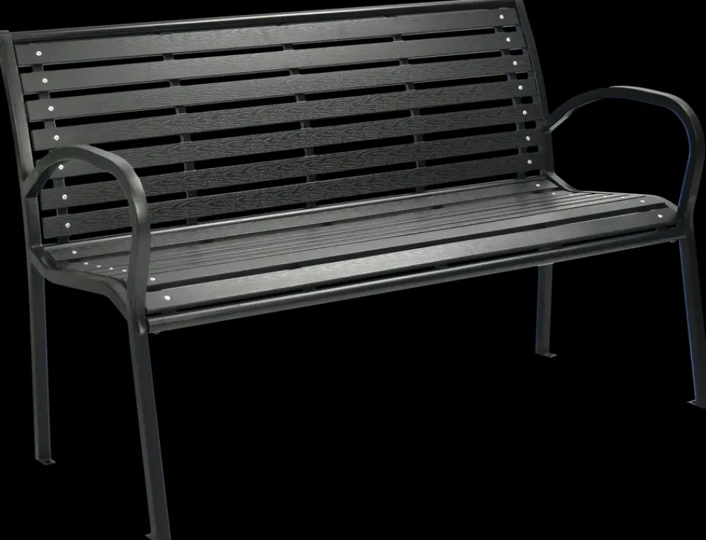 Havebænk i Non-Wood materiale, er nem at vedligeholde og sort stålstel.Non-Wood er et kunst materiale, som ligner træ og er nemt at vedligeholde.