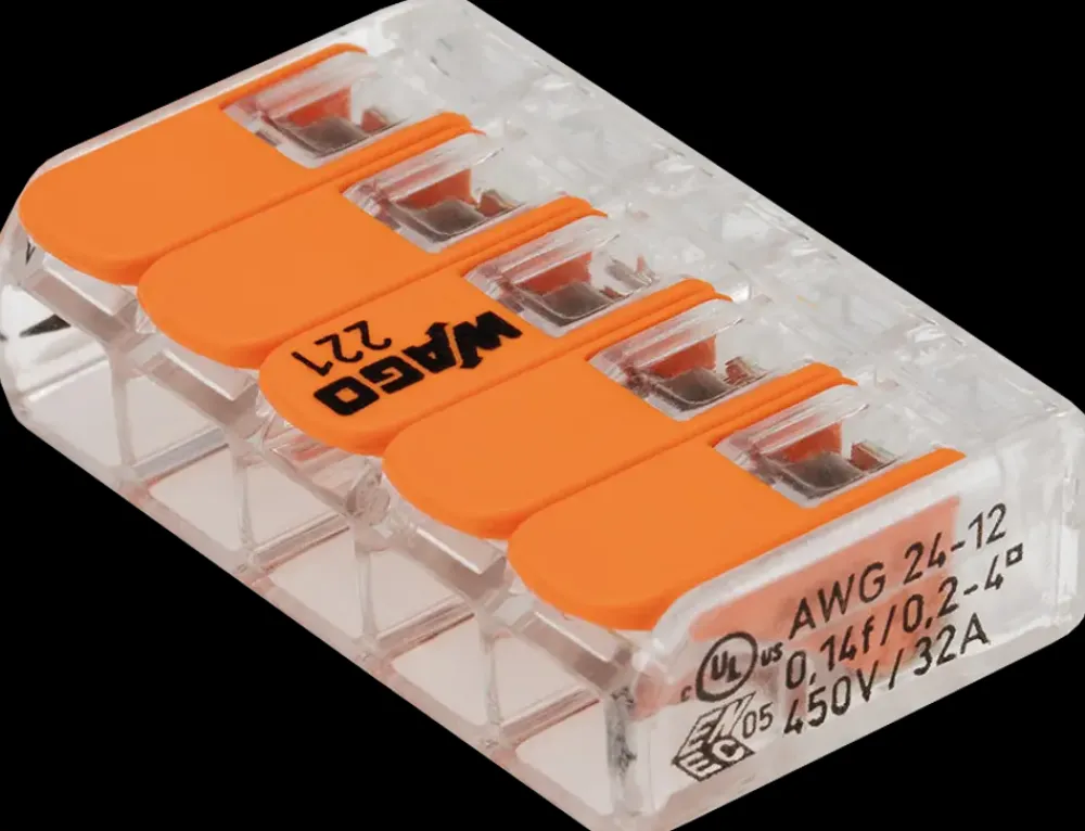 Fjedersamlemuffe fra Wago til samling af kabler eller ledninger.Tilslut ledere uden brug af værktøj.Antal tilslutninger: 5Op til 4 mm².Værktøjsfrie.Egnet til både enkelt- og flertrådet ledere.